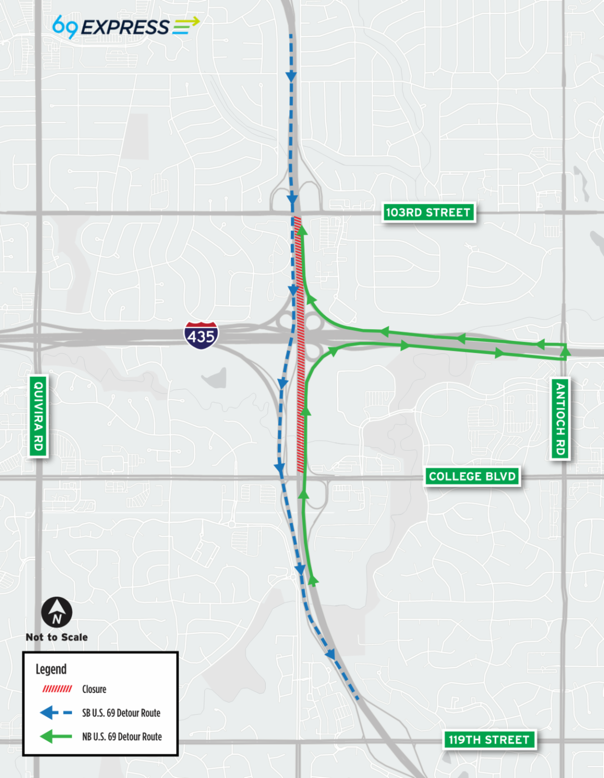Long-term closures are in effect for several ramps at I-435/U.S. 69/College Blvd. as bridge reconstruction continues. Please follow the marked detours.