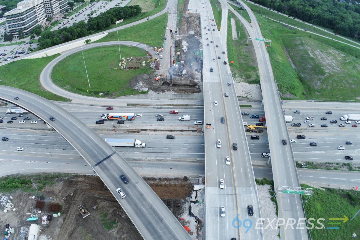 The 167th interchange work continues, with paving moving forward on the new U.S. 69 northbound bridge over 167th Street. Work on the new northbound pavement is also nearing completion. 167th Street will be expanded to four lanes and include roundabouts at the U.S. 69 and 167tht Street intersection, and the project will add south-facing ramps to and from both directions of U.S. 69. The 167th Street closure will remain in place through early October.