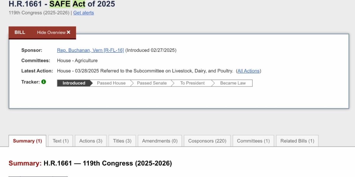 This slightly under 15-minute episode provides timely and informative insight into current federal policy and explains how passage of the SAFE Act would change outcomes for horses nationwide. A fact sheet on the issue is available, and you can click the image below to view the bill as well.