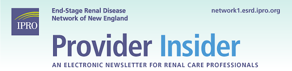 IPRO End-Stage Renal Disease Network of New England, the ESRD Organization for Connecticut, Maine, Massachusetts, New Hampshire, Rhode Island, and Vermont, prepared this material under contract with the Centers for Medicare & Medicaid Services (CMS), an agency of the U.S. Department of Health and Human Services. The contents presented do not necessarily reflect CMS policy. CMS Contract Number: HHSM-500-2016-00019C.