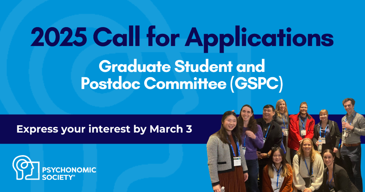 The Graduate Student and Postdoc Committee aims to foster the development of trainees and early career professionals in cognitive and experiential psychology. | The Psychonomic Society is looking to fill two positions this year. Applications are due by March 3. More. | |