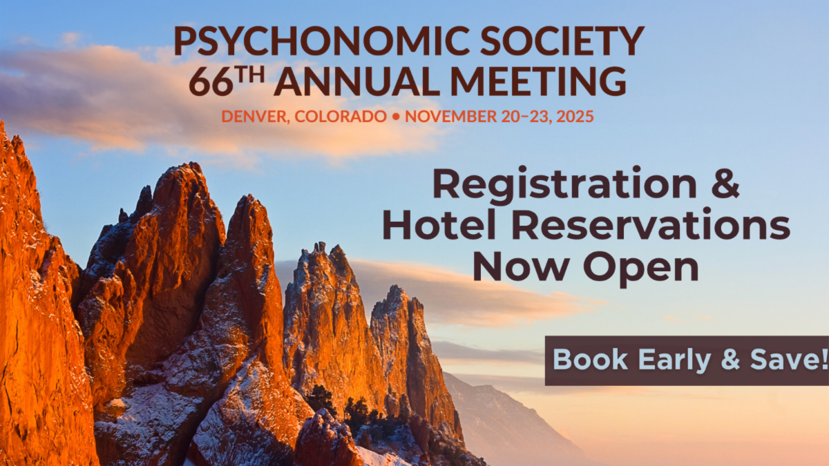 Registration for the 2025 Annual Meeting is officially open. Join more than 2,000 of your colleagues in Denver, Colorado, USA from November 20-23, for an unparalleled opportunity to share research, network with leaders in the field, and explore the latest advancements in cognitive psychology. Be sure to secure the best rates by taking action before the August 31 early registration deadline. More.