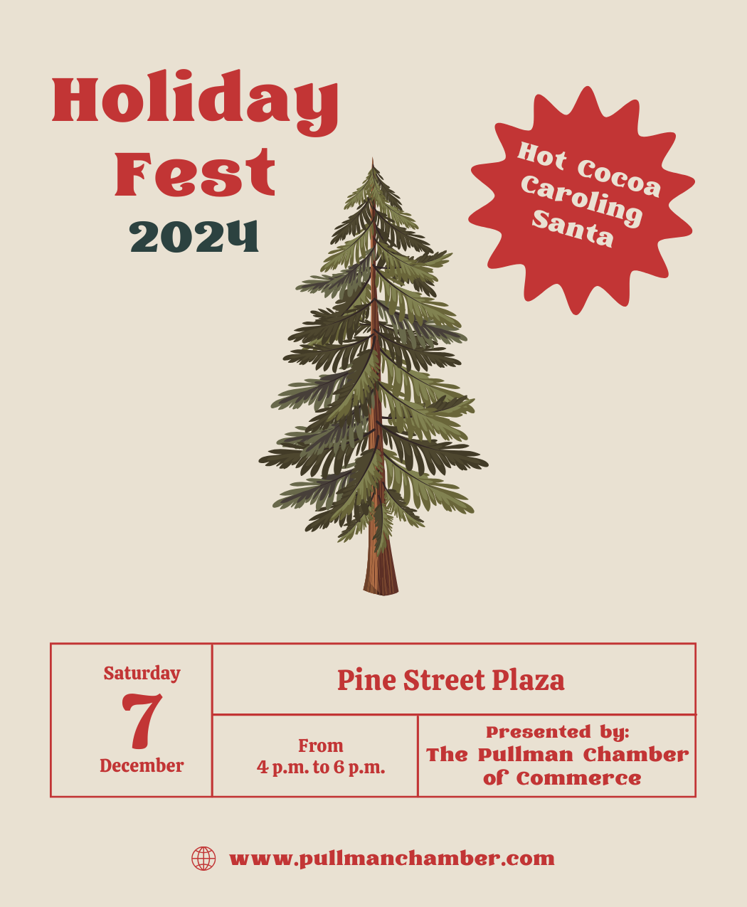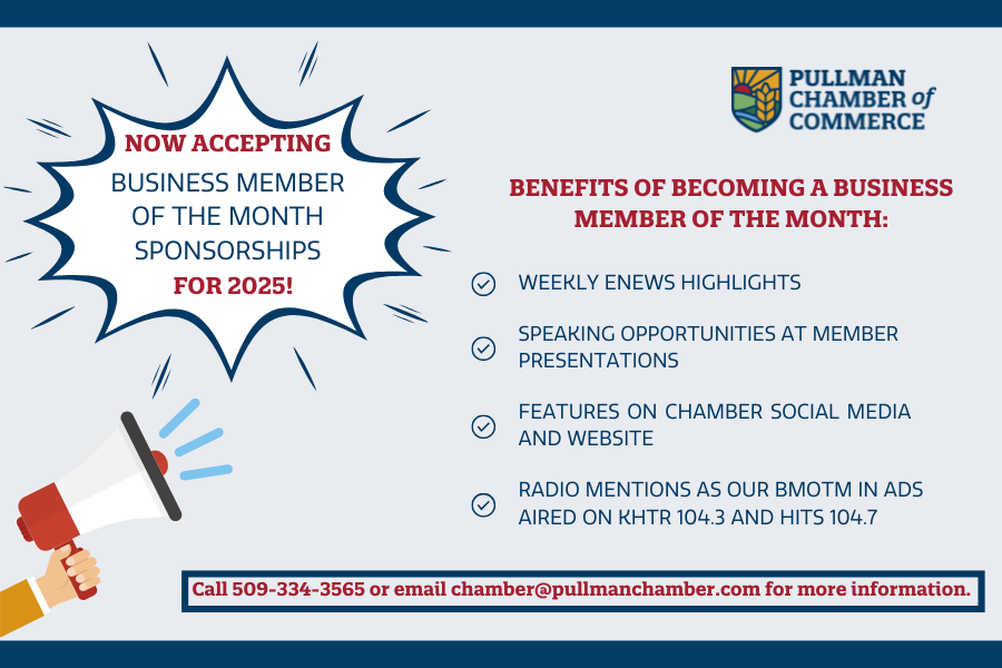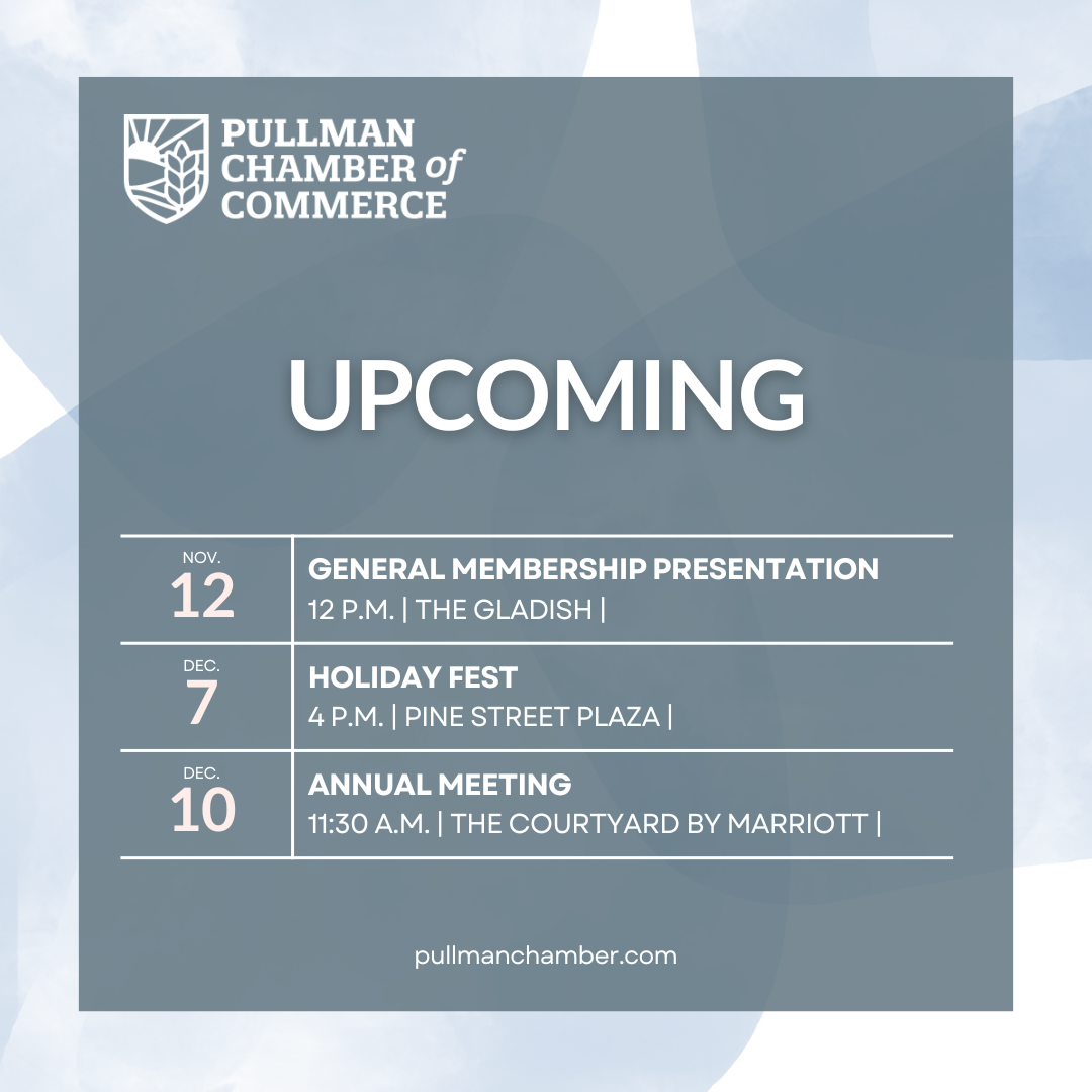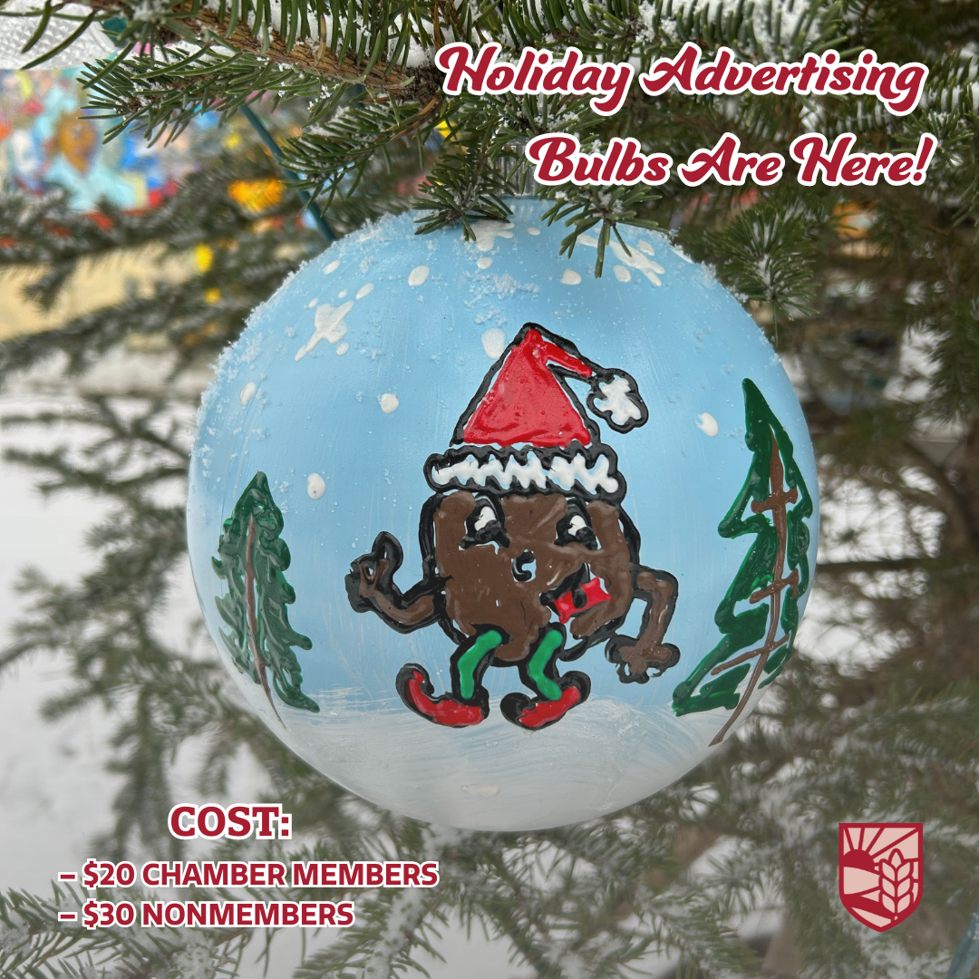 Purchase and decorate an 8" bulb to promote your business on our holiday tree, and you'll be entered into our holiday bulb decorating contest! The winner will receive $20 in Pullman Chamber Bucks, eligible to be spent at a variety of our local businesses.