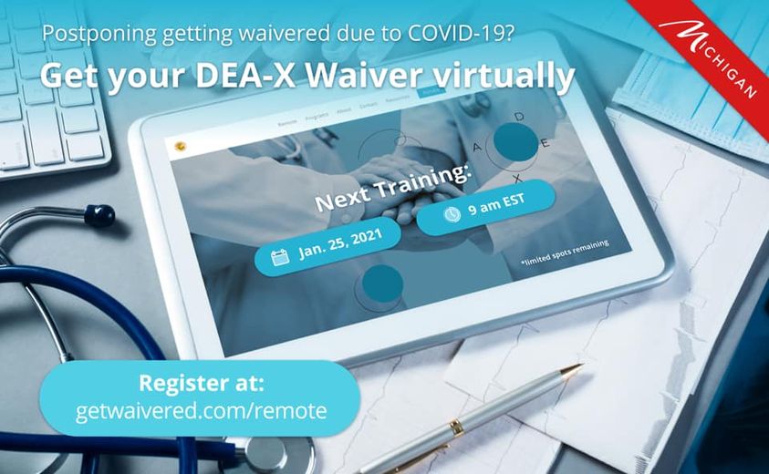 In response, Get Waivered, the American College of Emergency Physicians (ACEP), Providers Clinical Support System (PCSS), the Michigan Opioid Collaborative (MOC), the Michigan Emergency Department Improvement Collaborative (MEDIC) and the Michigan Opioid Prescribing Engagement Network (OPEN) are partnering to provide the first free, fully-remote MAT training class for Michigan providers on January 25th, while new, amended regulations allow for waivered physicians to prescribe buprenorphine without requiring an in-person intake appointment. After completing this course, clinicians will be able to provide evidence-based care to patients struggling with OUD, while limiting their reliance on emergency department resources.