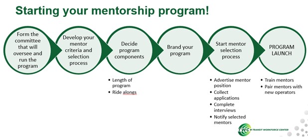 TWC continues its national work supporting and promoting apprenticeship and mentorship programs across frontline occupations in the transit industry, engaging agencies and their workforce partners, and providing ongoing technical assistance to develop and implement these programs. Last month, TWC held a meeting of the American Transit Trainers and Apprenticeship Innovators Network (ATTAIN), focusing on bus operator apprenticeship and mentorship programs. Presentations described the process of setting up mentorship and registered apprenticeship programs, provided guidance on how to identify and contact the appropriate state office of apprenticeship, and illustrated how various program components can be altered according to the needs of agencies and their workforce partners.
