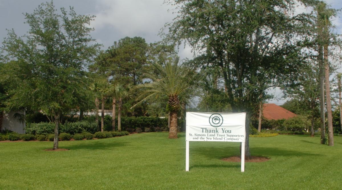 Temporary sign put up in 2005 which has been replaced by a permanent St. Simons Land Trust sign.