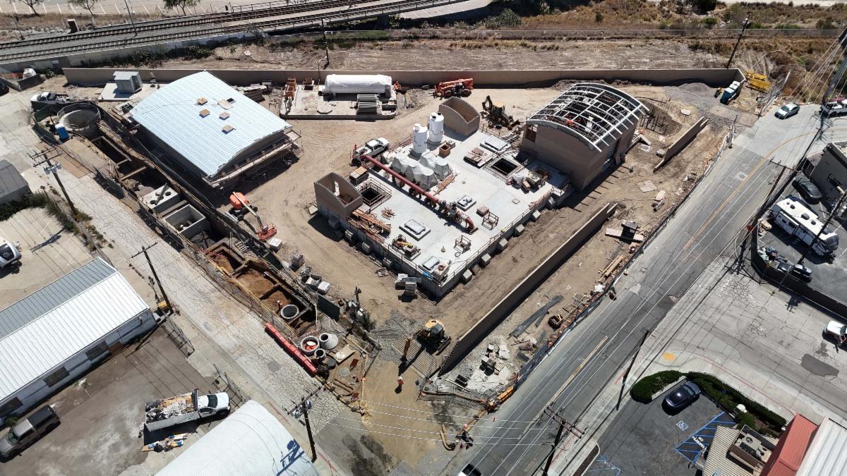 Progress on the Morena Pump Station continues. Crews worked on the upper levels of the pump station by continuing construction of the electrical building, maintenance building, and the perimeter walls, as well continuing progress on the various structures that will form the future pump station.