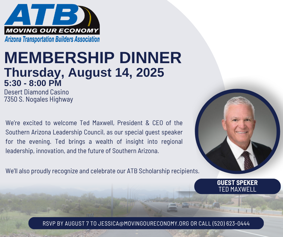 Open to ALL Memberships, this meeting includes updates from ARTBA, ADOSH, City of Tucson, Pima County, Towns of Marana and Oro Valley, local utilities, and many more.
