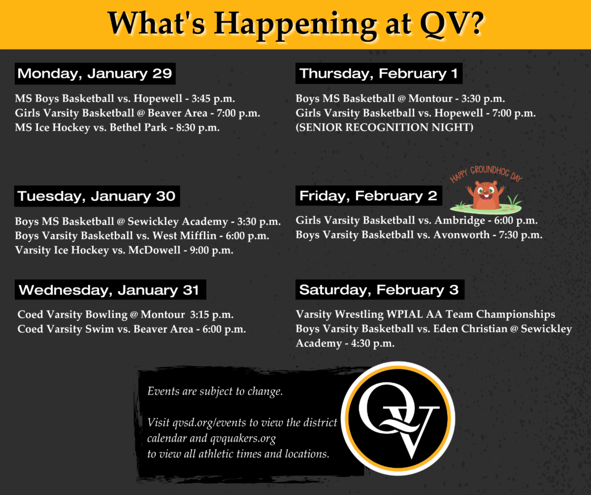 2023-2024 Athletic Event Passes are now available for sale! To purchase, contact the QVHS Athletic Office at 412.749.6001 or johnsc@qvsd.org.