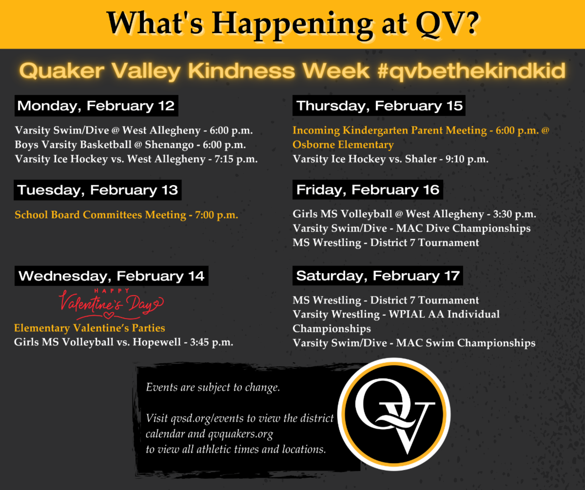 The events and programs included in this section are operating independently of the Quaker Valley School District. The distribution of this information does not indicate endorsement or sponsorship by the District.