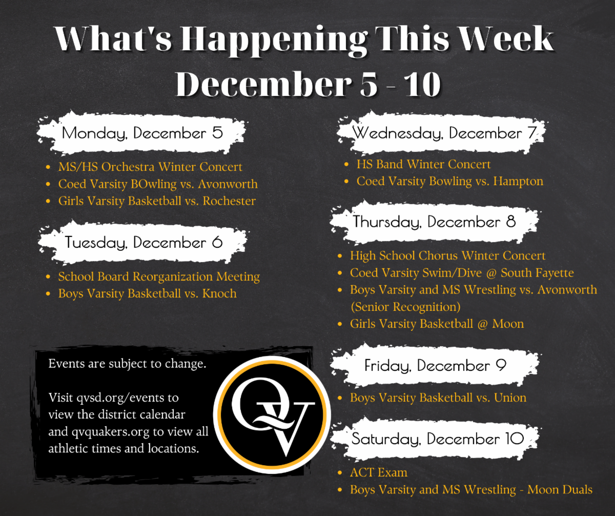 2022-2023 Athletic Event Passes now available for sale! To purchase, contact the QVHS athletic office at 412-749-6001 or johnsc@qvsd.org.
