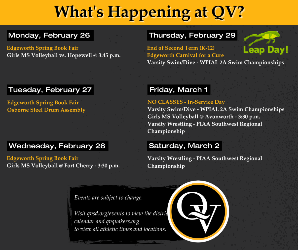 As Quaker Valley Teams compete during this playoff season check our QV Athletics Website for all playoff and championship updates.