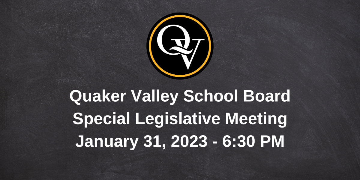 The Quaker Valley School Board will meet on Tuesday, January 31 at 6:30 p.m. in the Edgeworth Elementary Large Group Instruction Room. The public is encouraged to attend this in-person special legislative session.
