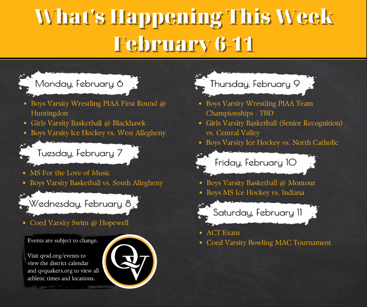 2022-2023 Athletic Event Passes now available for sale! To purchase, contact the QVHS athletic office at 412-749-6001 or johnsc@qvsd.org.