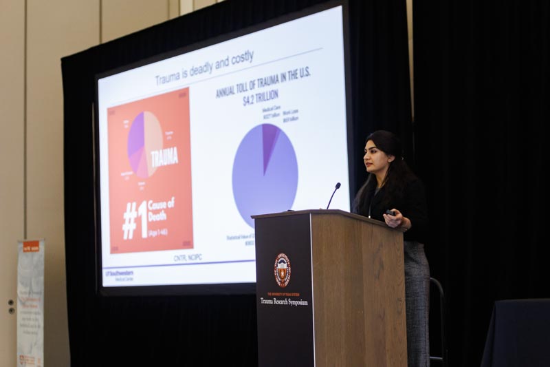 2025 UT System Trauma Research Symposium | | Pictured: Roopa Kouri, Dr. Ryan Huebinger, Dr. Deborah Carlson, Dr. Ben Levi, Chase Pagani, Lauren Choi, Dr. Neda Vishlaghi, Dr. Nagham Alatrash | | |