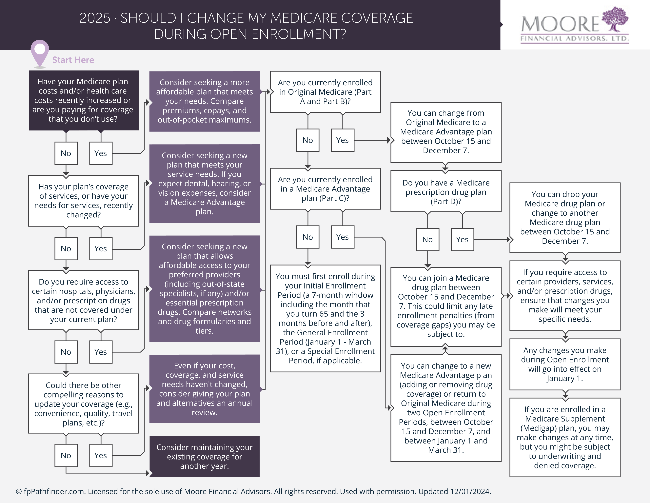 Medicare Open Enrollment Period: Open enrollment runs from October 15 to December 7. This window is the only time of year (outside of special circumstances) when retirees can make important changes to their Medicare coverage. For optimizing your Medicare health plan, it’s a crucial time to review if you need to make changes. |