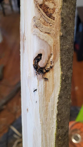 T. planipennisi parasitizing a sentinel log in the field.