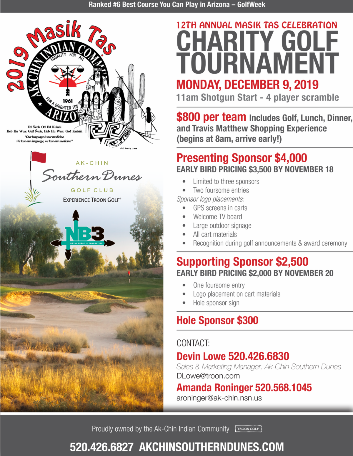 Attention all our golfers! The Ak-Chin Indian Communities of Arizona is hosting the 12th annual Masik Tas Celebration Charity Golf Tournament on