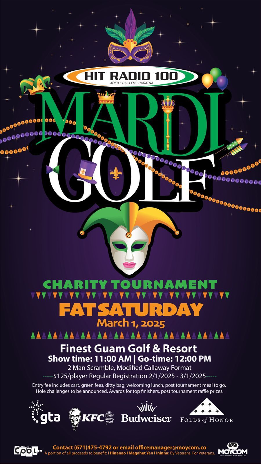 Hit Radio 100 presents its Mardi Golf Tournament scheduled to take place on Saturday, March 1, 2025, at the Finest Guam Golf Resort, and they are excited to announce that proceeds will benefit I Hinanao, I Magahet, Yan I Ininna (HMI) by Veterans for Veterans, an incredible organization dedicated to empowering and supporting our local veteran community.