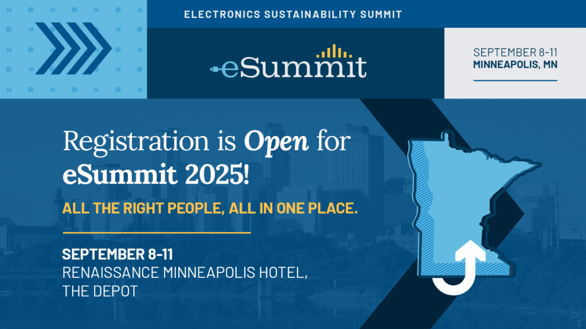 eSummit 2025, Minneapolis, MN, Sept. 8-11 – Join industry leaders, innovators, and forward-thinkers in Minneapolis this September for collaboration across the entire electronics lifecycle. Last year brought together manufacturers, recyclers, refurbishers, regulators, policymakers, and more to drive meaningful progress toward a circular economy. This year promises even more opportunities for networking, knowledge-sharing, and actionable solutions. Registration is now open, and exhibitor opportunities are available!