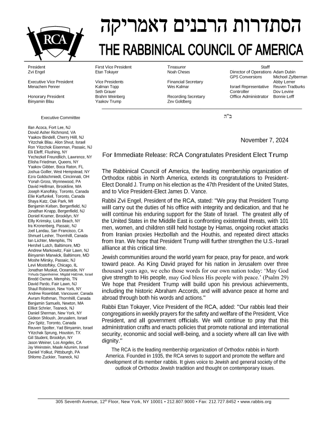- The Executive Committee meeting this week was especially well-attended and featured robust discussion about steps forward for the RCA. We look forward to working with this excellent group of chaveirim.