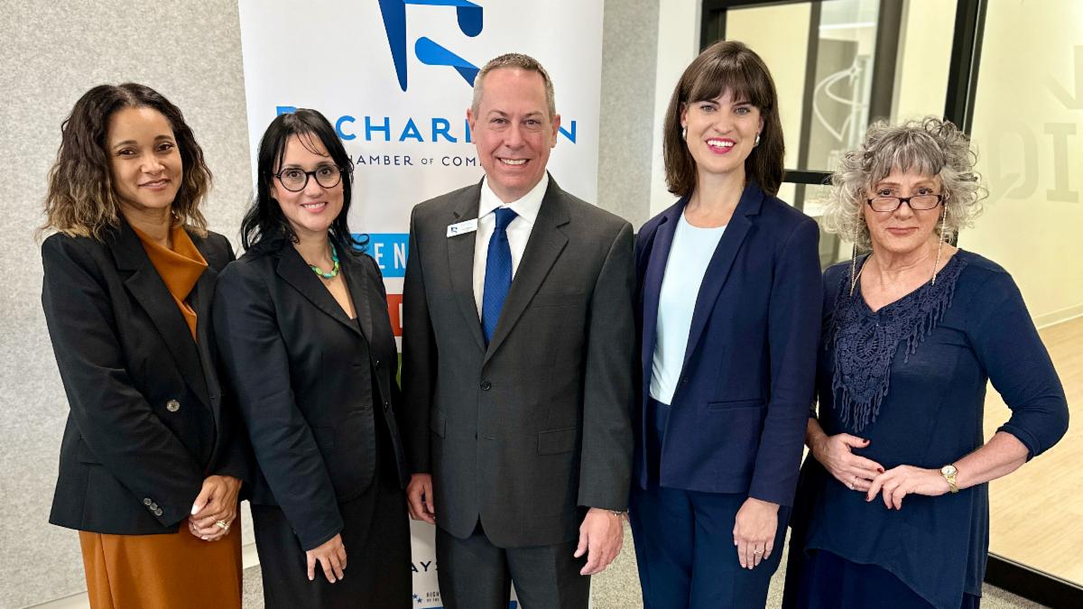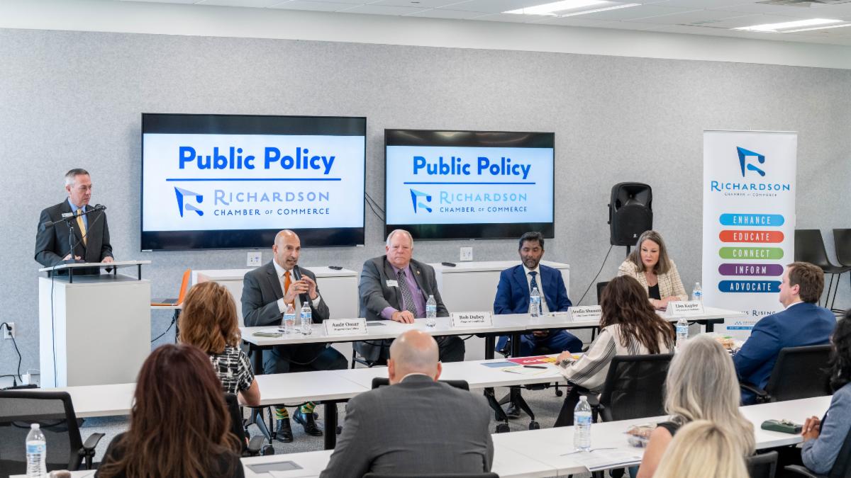 | | Women in Leadership's Social on April 23 included a volunteer project at The Warren Center. Recently honored as the Chamber's 2024 Non-Profit of the Year, The Warren Center helps children reach their developmental goals through individualized therapy-based care and provides support services to families. Participants created interactive books to build language skills and literacy. WIL sponsors are Methodist Richardson Medical Center and Texas Bank and Trust. | | Tracy Ruckel with Community Impact moderates a forum on April 17 with Mayoral candidates Amir Omar and Bob Dubey (incumbent) and City Council Place 6 candidates Arefin Shamsul (incumbent) and Lisa Kupfer. Early voting started this week and runs through Tuesday, April 29. Election Day is May 3. Visit the City's website for polling dates, times and locations. The Candidate Forum was sponsored by Linebarger Goggan Blair & Sampson, LLP. | | Shown at our Richardson ISD Candidate Forum on April 15 are from left: Rachel McGowan, District 5 incumbent; Vanessa Pacheco, District 2 incumbent; Tracy Ruckel with Community Impact; Pamela Hughes, District 2 candidate; and Elaine Bonavita, District 2 candidate. Early voting started this week and runs through Tuesday, April 29. Election Day is May 3. Visit the City's website for polling dates, times and locations. The Candidate Forum was sponsored by Linebarger Goggan Blair & Sampson, LLP. | | |