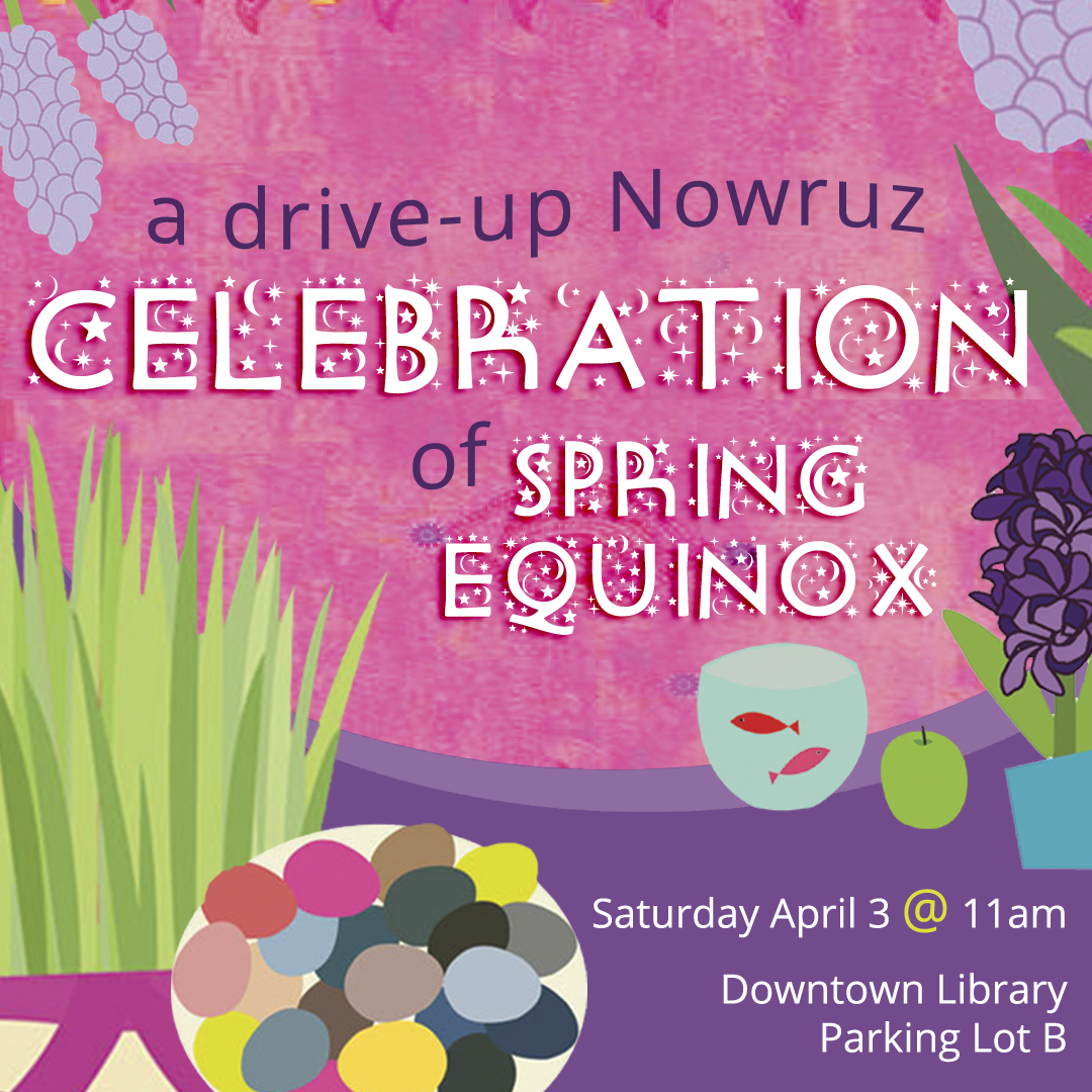 Join us on April 3 for a drive up Nowruz celebration! Drive through Parking Lot B for a festive celebration of the Spring Equinox. There will be craft materials with accompanying story and musical videos.