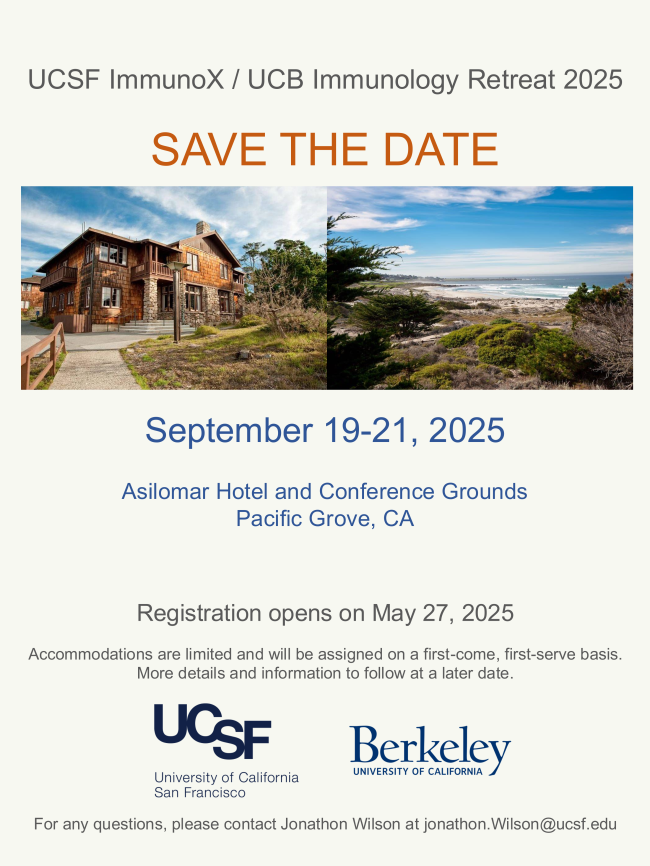 We would like to invite you to register for the 2025 UCSF ImmunoX / UCB Immunology Retreat!