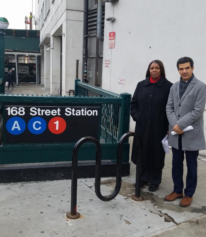 New York, NY -- Following a week where elevators at the 168th Street subway station broke down on four separate occasions, elected officials and community residents are saying "enough." At a press conference outside the subway station, NYC Council Member Ydanis Rodriguez, NYC Public Advocate Letitia James and representatives from uptown elected officials' offices explained that this situation is unacceptable, as riders were left crowded on the deeply submerged platform, leading to trains skipping the stop entirely.