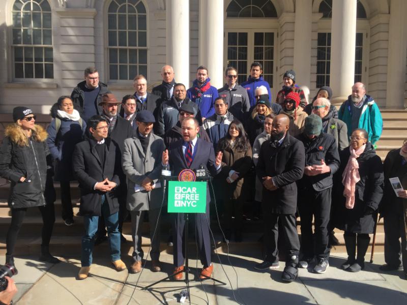 PRESIDENTE DEL CONCEJO MUNICIPAL COREY JOHNSON & YDANIS RODRIGUEZ, PRESIDENTE DEL COMITE DE TRANSPORTE ANUNCIAN UN DIA LIBRE SIN CARROS 2018
