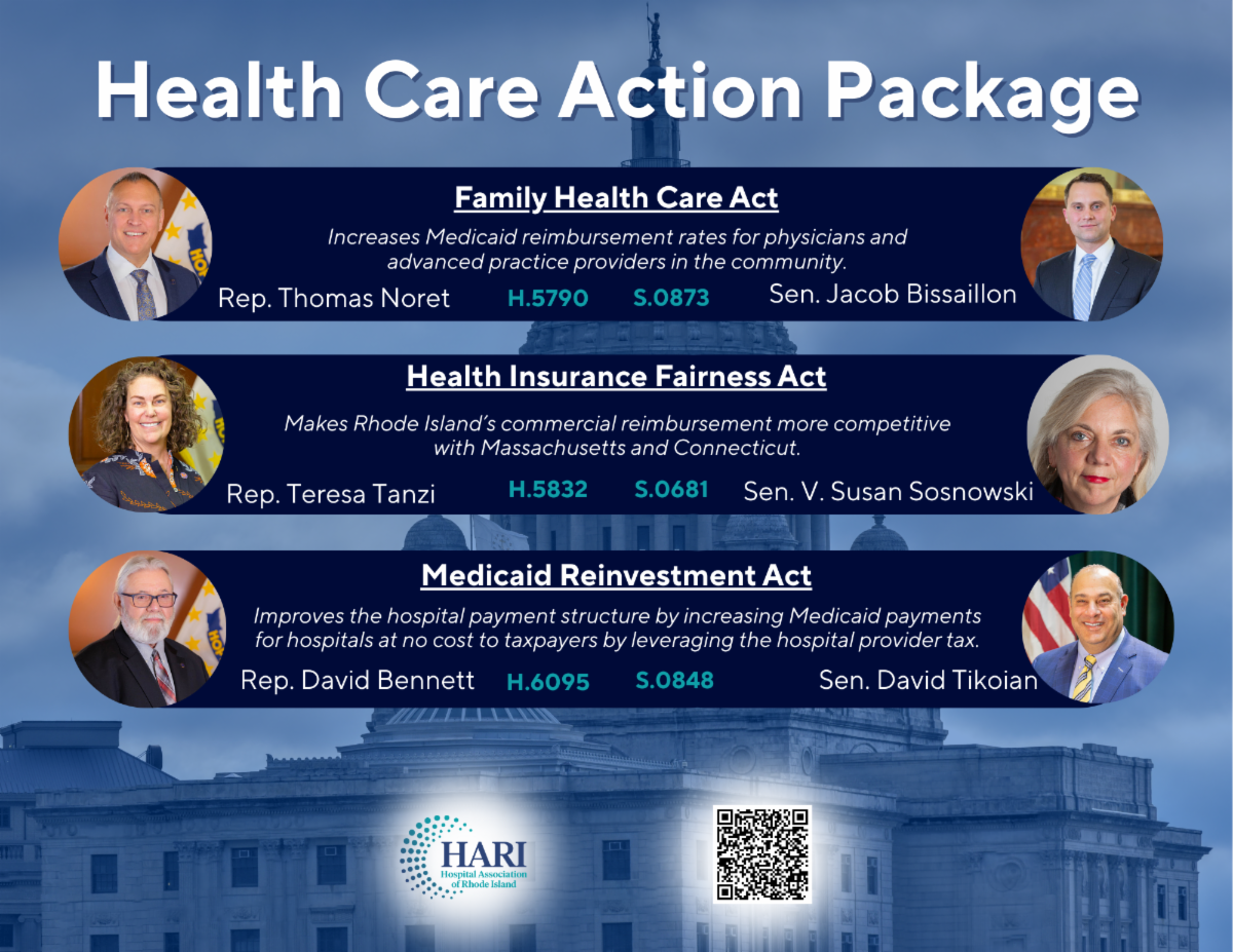 Health Insurance Fairness Act (H.5832/S.0681): Makes Rhode Island’s commercial reimbursement rates more competitive with Massachusetts and Connecticut.
