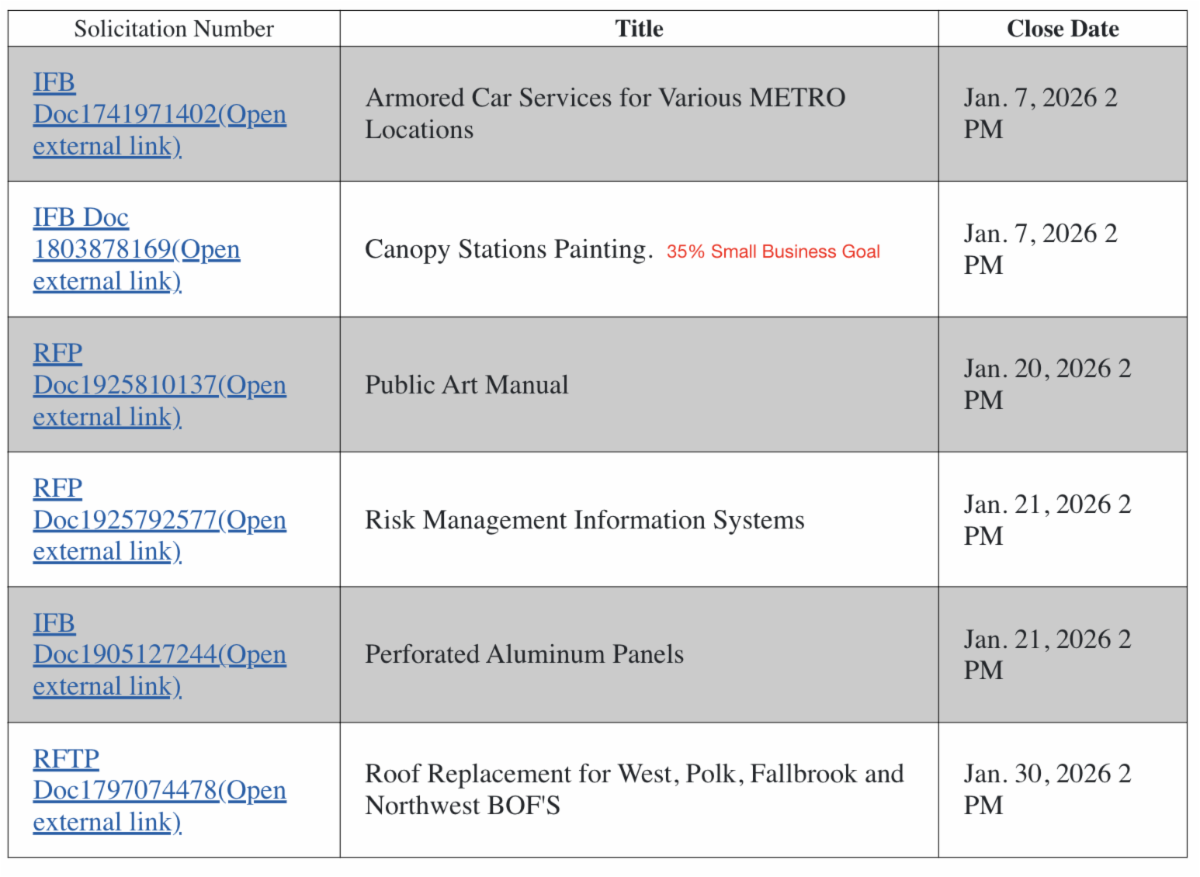 You Must Be Registered in METRO's Bonfire Hub, In Order To View Solicitations In Detail.