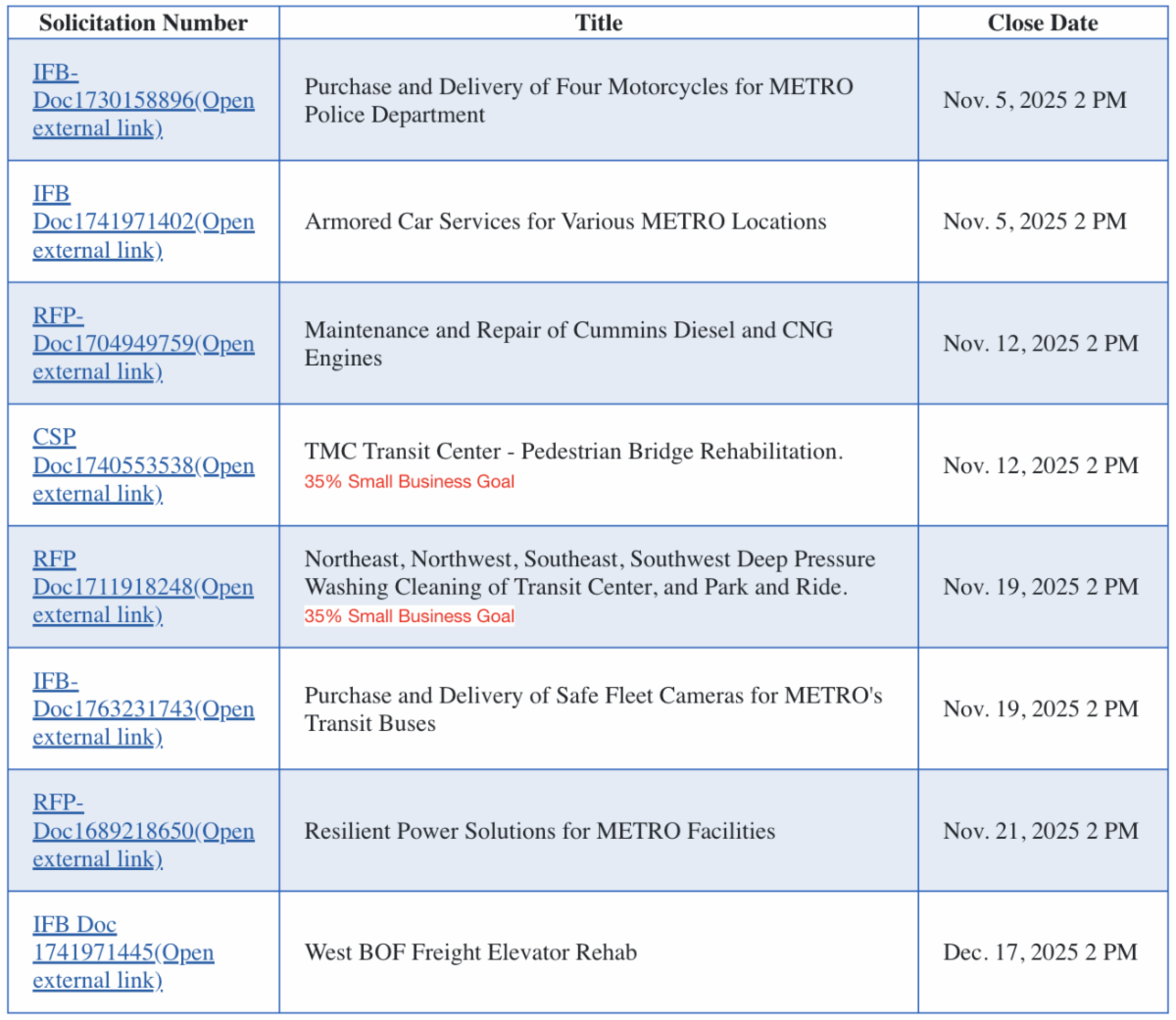 You Must Be Registered in METRO's Bonfire Hub, In Order To View Solicitations In Detail.