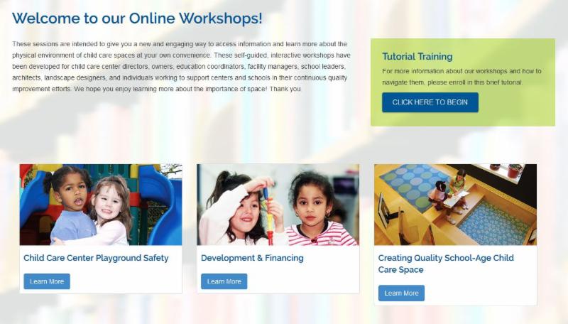 The Rhode Island Child Care and Early Learning Facilities Fund is proud to offer online workshops, which are intended to give you a new and engaging way to access information and learn more about the physical environment of child care spaces at your own convenience. These self-guided, interactive workshops have been developed for child care center directors, owners, education coordinators, facility managers, school leaders, architects, landscape designers, and individuals working to support centers and schools in their continuous quality improvement efforts. We hope you enjoy learning more about the importance of space!