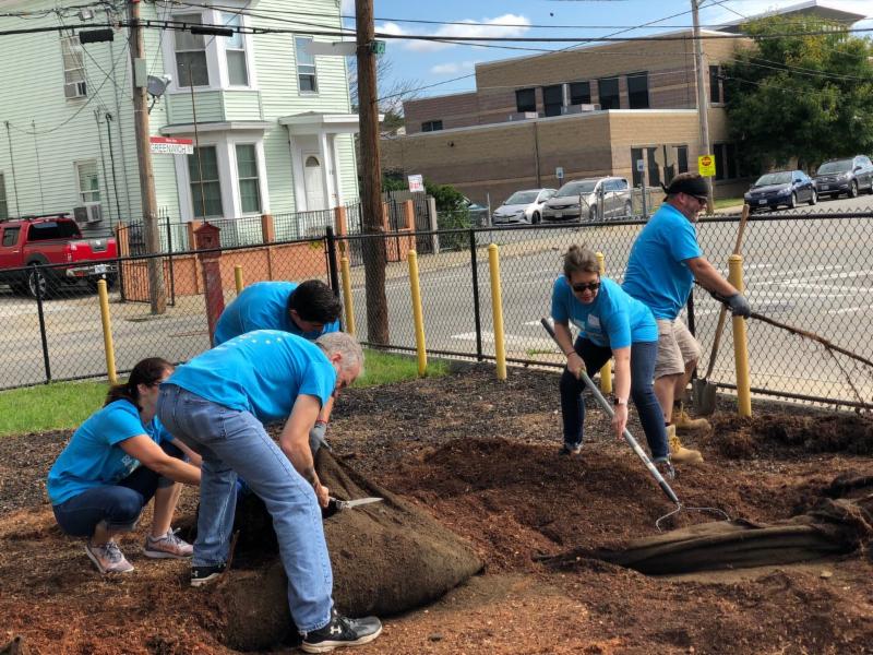 Two of our Outdoor Play Intervention sites, The Genesis Center in Providence, and the Y’s Owl Nursery School – Kent County YMCA in Warwick, were selected to participate in the Blue Across Rhode Island initiative, a program of Blue Cross Blue Shield of Rhode Island, which provided 70 volunteers for a day of service on September 21, 2018. The weather was great, but the spirit was greater as the volunteers took to task to transform each of the play spaces. Visit