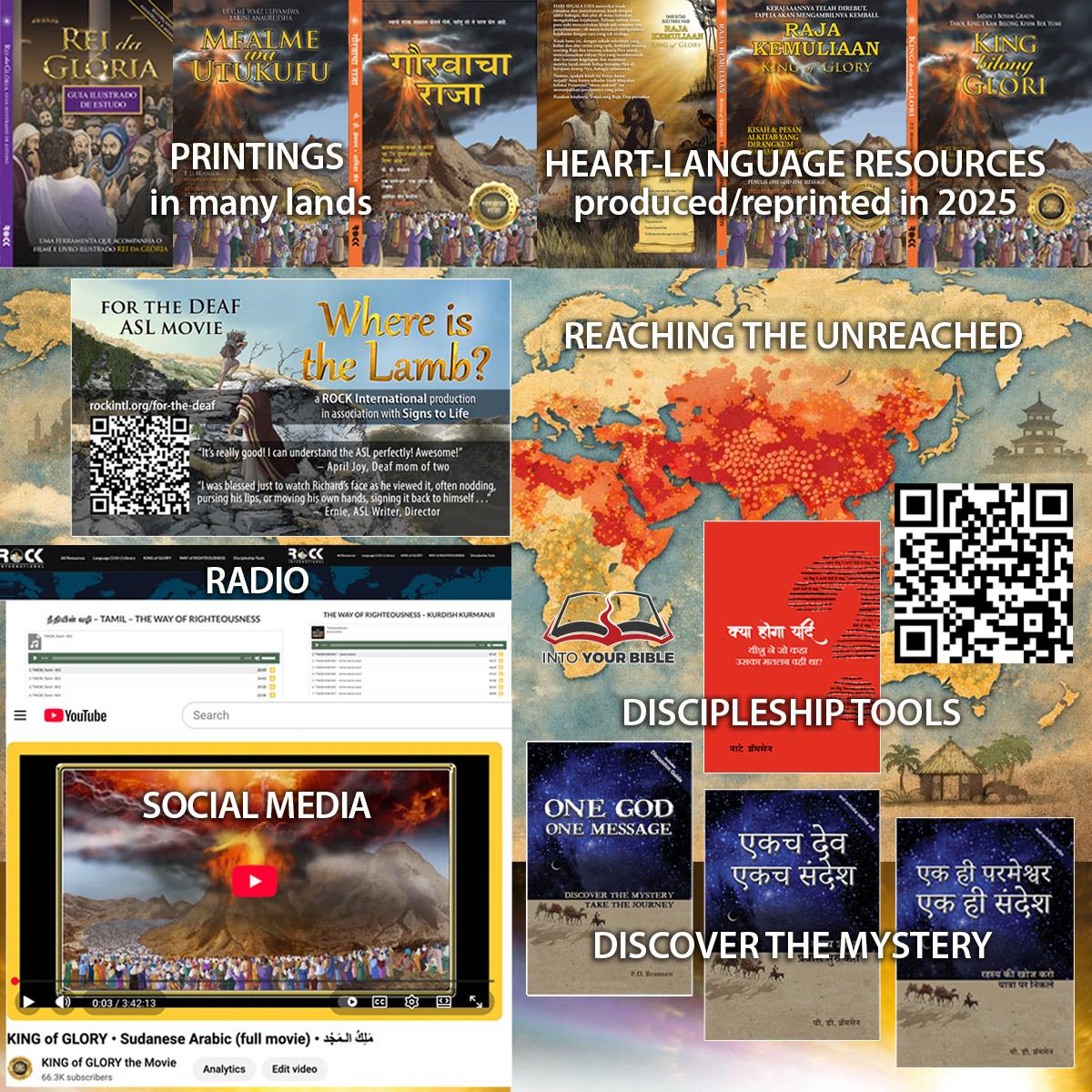 ROCK International has cross-cultural gospel and discipleship tools in 115+ languages in audio, video, digital, and print formats (see above graphic showing some media tools produced in 2025, all available online). We also have, for example, the KING of GLORY movie (in 60+ languages) embossed cards with QR codes, which are readily received by people of our own nation and from other nations with whom we connect daily in the marketplace of life. [www.rockintl.org/rock-refugee-flyer] But does the availability of such gospel media by itself fulfill the Great Commission? No. While many people from many worldviews have turned to Christ after absorbing, understanding, repenting, and believing God's creation-to-Christ story and message — such online resources play only a part in carrying out Christ’s commission. Making disciples of all peoples takes incarnational servants of Christ to connect with them, listen to them, understand them, love them, teach them, and walk with them (1 Cor. 9:19-23; Matt. 28:18–20; Acts 14:21–27). As the incarnate Word Himself put it, “The harvest truly is plentiful, but the laborers are few. Therefore pray the Lord of the harvest to send out laborers into His harvest” (Matt. 9:35–38).