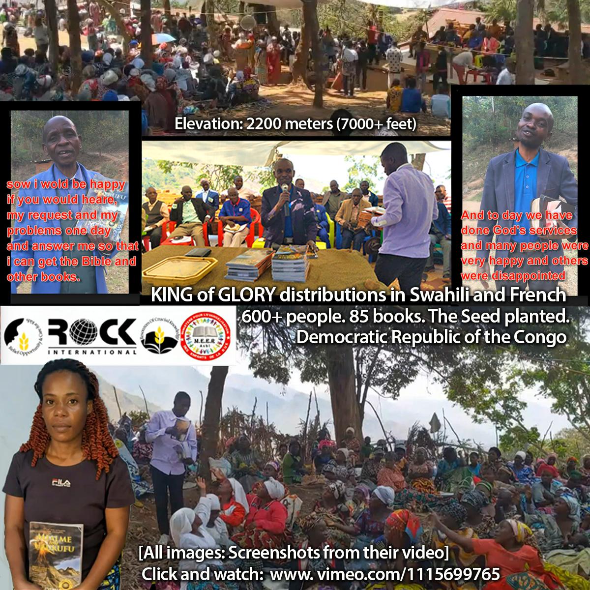 Last month we focused on Papua New Guinea where 50,000 KoG books are being distributed. For another example (from last week) of God at work through printed books, see this month’s thumbnail and video from believers in the D.R. Congo. Their video shows the distribution of KING of GLORY books in Swahili and French among a crowd of 600+ (who had just walked up a mile-high mountain). But the leaders had only 85 books with them, making it quite a different process from when Jesus fed 5000+, where "all ate and were filled." Yet, in both places, "the Bread of Life" who "fills the hungry soul with goodness" (Psalm 107:9) was shared.
