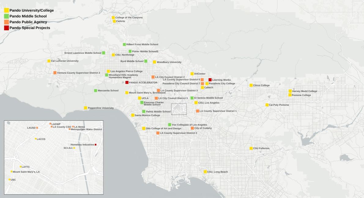 In total, we’ve seen 73 Pando Days projects come alive in collaboration with 25 higher ed institutions and 125 community partners. Last year alone, 21 Pando Days projects were successfully developed – an astounding 80% of which are alive in the real world making real change at real street addresses, right now.