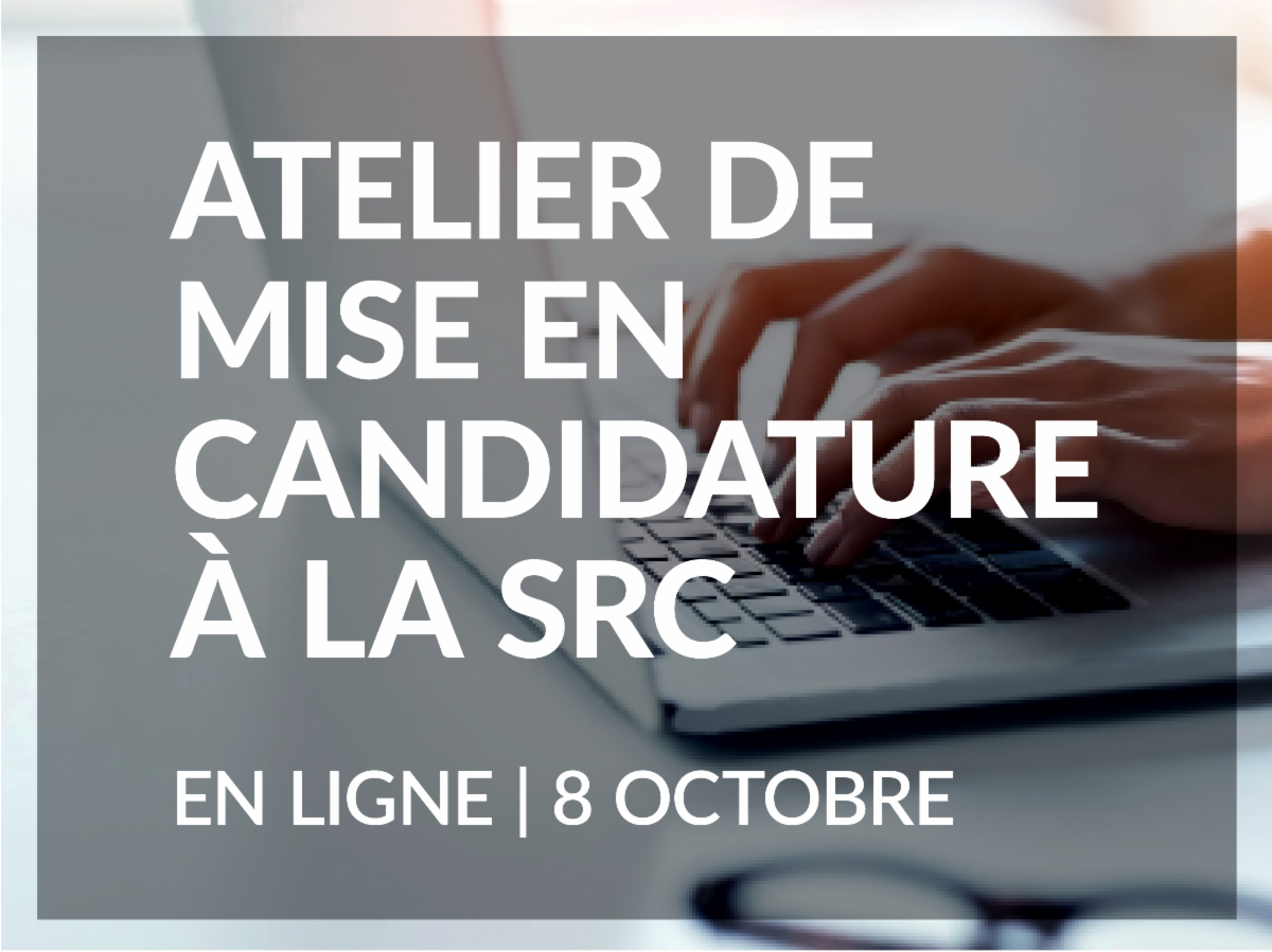 Appel de présentations ! « Idées en vrac » est une séance au cours de laquelle les membres de la SRC peuvent présenter leurs travaux, que ce soit via une présentation visuelle, multimédia, littéraire (ou tout autre format : soyez créatifs !). Les amis et partenaires de la SRC ont également un espace dédié à la promotion des occasions de s’engager.