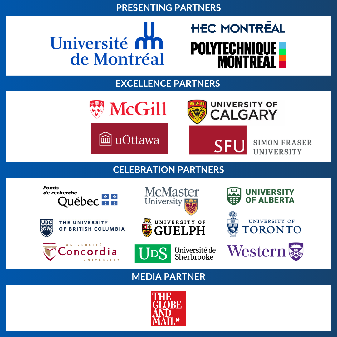 Celebration Partners: Fonds de recherche du Québec, McMaster University, University of Alberta, The University of British Columbia, University of Guelph, University of Toronto, Concordia University, Université de Sherbrooke, Western University