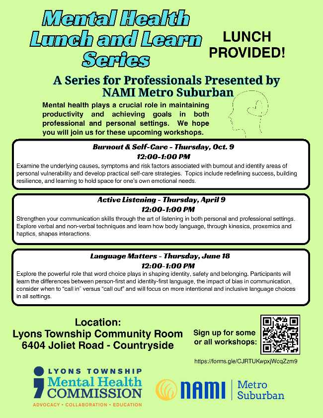 Lunch Provided! Calling all area professionals - examine the underlying causes, symptoms and risk factors associated with burnout and identify areas of personal vulnerability and develop self-care strategies.