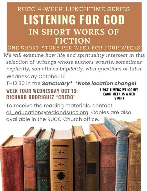 This Wednesday, October 15, 11 a.m.-12:30 p.m. in the Sanctuary. First-timers welcome!