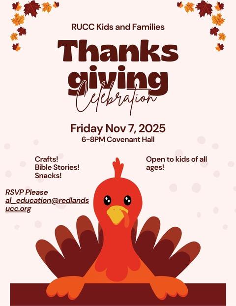 The Redlands Area Interfaith Council presents our annual Thanksgiving celebration November 16, 2025 4:00 p.m. First United Methodist Church.