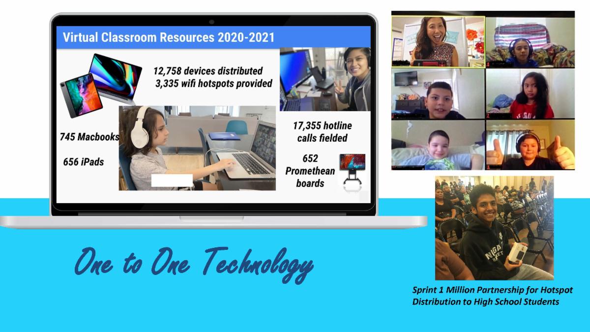 As a direct result of the vision of laying the educational technology infrastructure years in advance, Rowland Unified was able to pivot quickly and move from a traditional brick and mortar organization to an all virtual learning setting in a single weekend when the pandemic hit. Online learning brought light to the insufficient internet access for families and the District quickly purchased and provided 3,335 hot spots to students, as well as specialized technology to meet the needs of the District’s homeless population who didn’t have access to WIFI.
