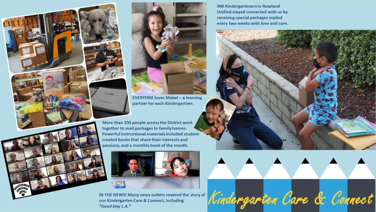 The foundation of school success begins in Kindergarten, and in the midst of the pandemic, there was concern for our youngest learners. The District reinvented the kinder learning experience while maintaining high standards of care, compassion, connection and content with Kinder Care and Connect. Using the vehicle of reading and bi-weekly mail deliveries, 900 kindergarten students and families from across the district were connected with lessons focused on books of the month that built home libraries. Knowing that learning remotely may be lonely, every kindergartener received their own learning partner, a stuffed elephant lovingly known as Mabel. Students interacted with authors and illustrators with online sessions and students thrived by writing their own stories that were turned into books that were also mailed home.