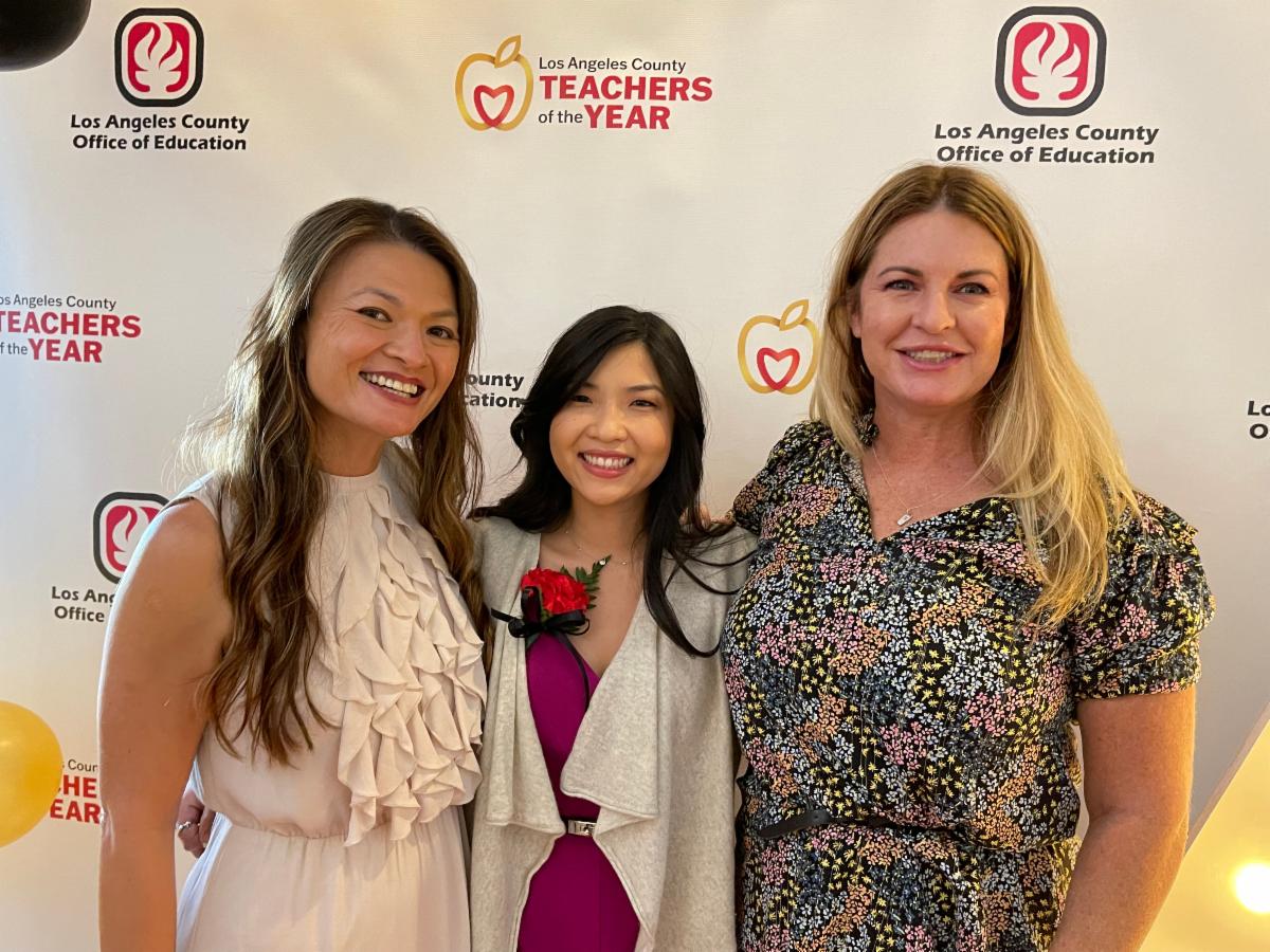 Rowland Unified School District Teacher of the Year Ashley McGrath (pictured in center above) with Jellick Elementary Instructional Coach Tracy Do and Shelyn Elementary Principal Sarah Opatkiewicz.