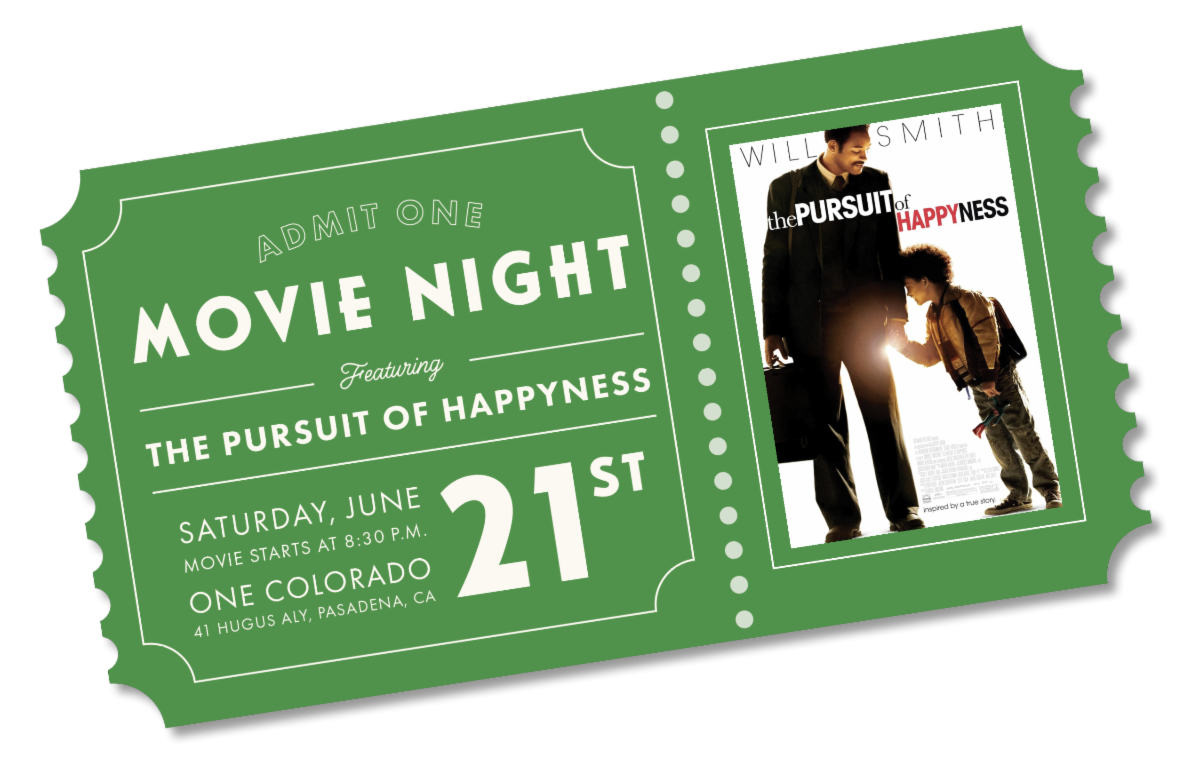 It is not too late to join as a sponsor, or to just come and enjoy an evening under the stars watching a meaningful film, The Pursuit of Happyness. Food and drinks are available from restaurants at One Colorado, and there will be some opportunity drawing prizes to be won. Don’t miss out on the fun!