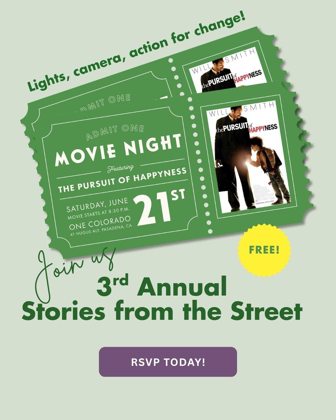 Join us Saturday, June 21st at One Colorado for Stories from the Street—a night of cinema, compassion, and community featuring The Pursuit of Happyness, a powerful story of resilience and hope.