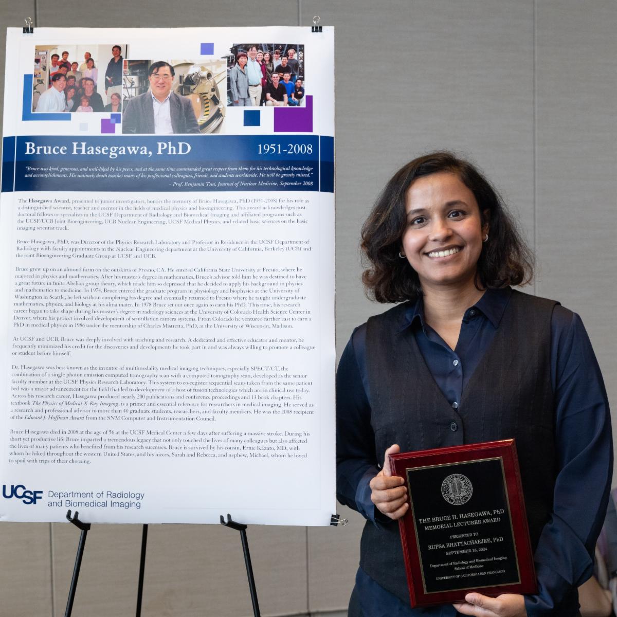 Rupsa Bhattacharjee, PhD, received the Bruce Hasegawa Award for her research on musculoskeletal MRI Imaging and osteoarthritis using machine and deep learning techniques. Dr. Bhattacharjee’s work was recognized with an ISMRM Summa cum Laude award and she was also named an ISMRM Junior Fellow. | | |