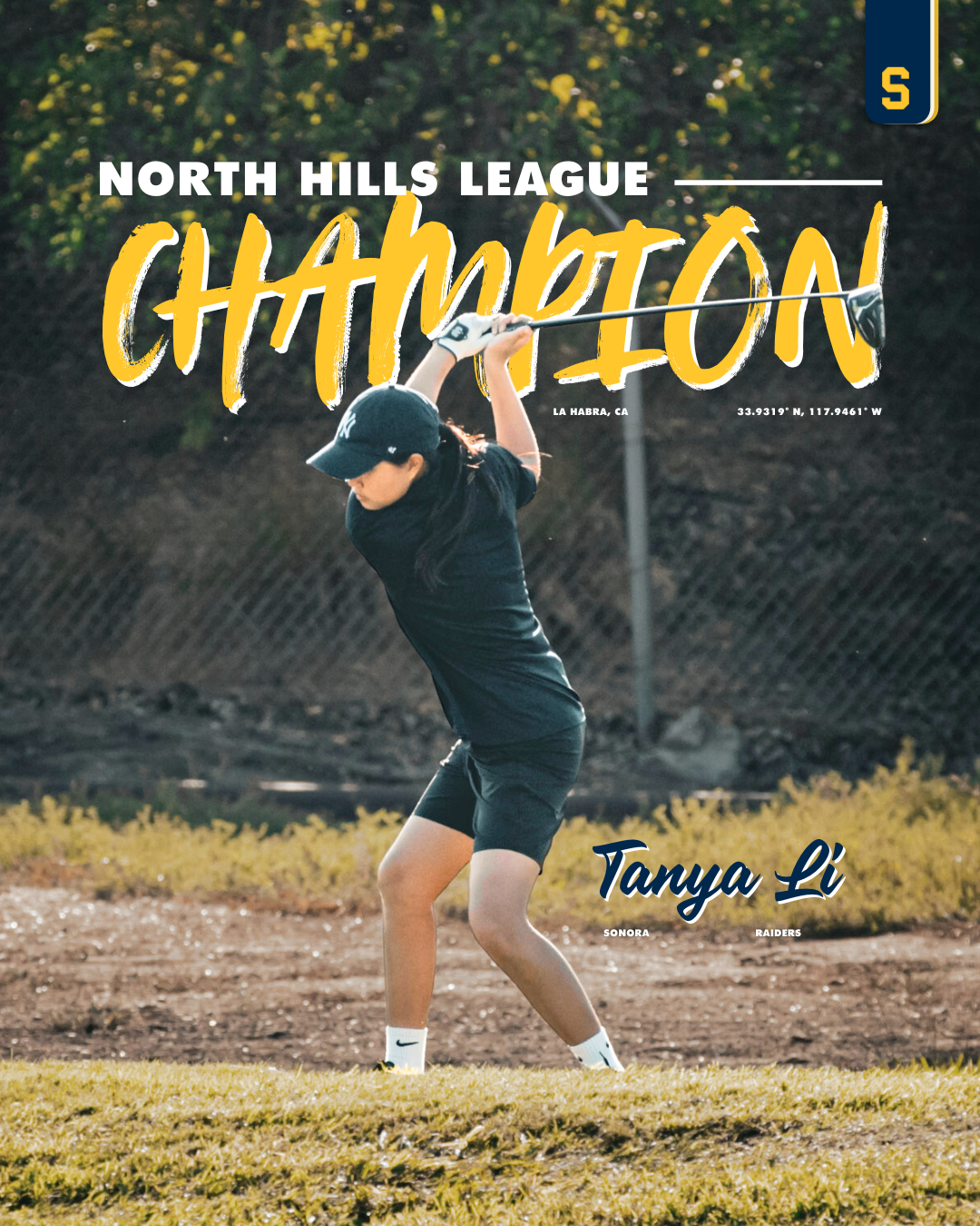Freshman golf sensation Tanya Li has already made history in her first season representing Sonora. Competing with composure, focus, and incredible skill, Tanya captured Sonora’s first-ever individual Girls Golf League Championship, an achievement that will be remembered for years to come. She didn’t just win—she dominated the field, finishing an astounding 15 strokes ahead of her nearest competitor. Tanya’s success is a testament to her dedication to her craft and her calm, determined approach to the game. As just a freshman, she has set a new standard for excellence and opened the door for future generations of golfers at Sonora to believe that anything is possible. Her historic performance has filled our community with pride, and we can’t wait to see what she accomplishes next as she continues to grow and compete.